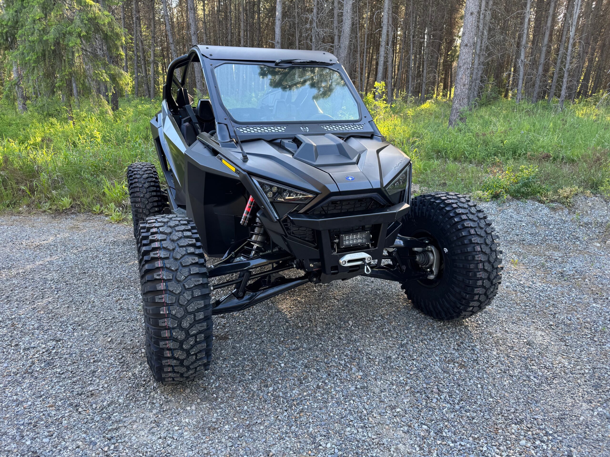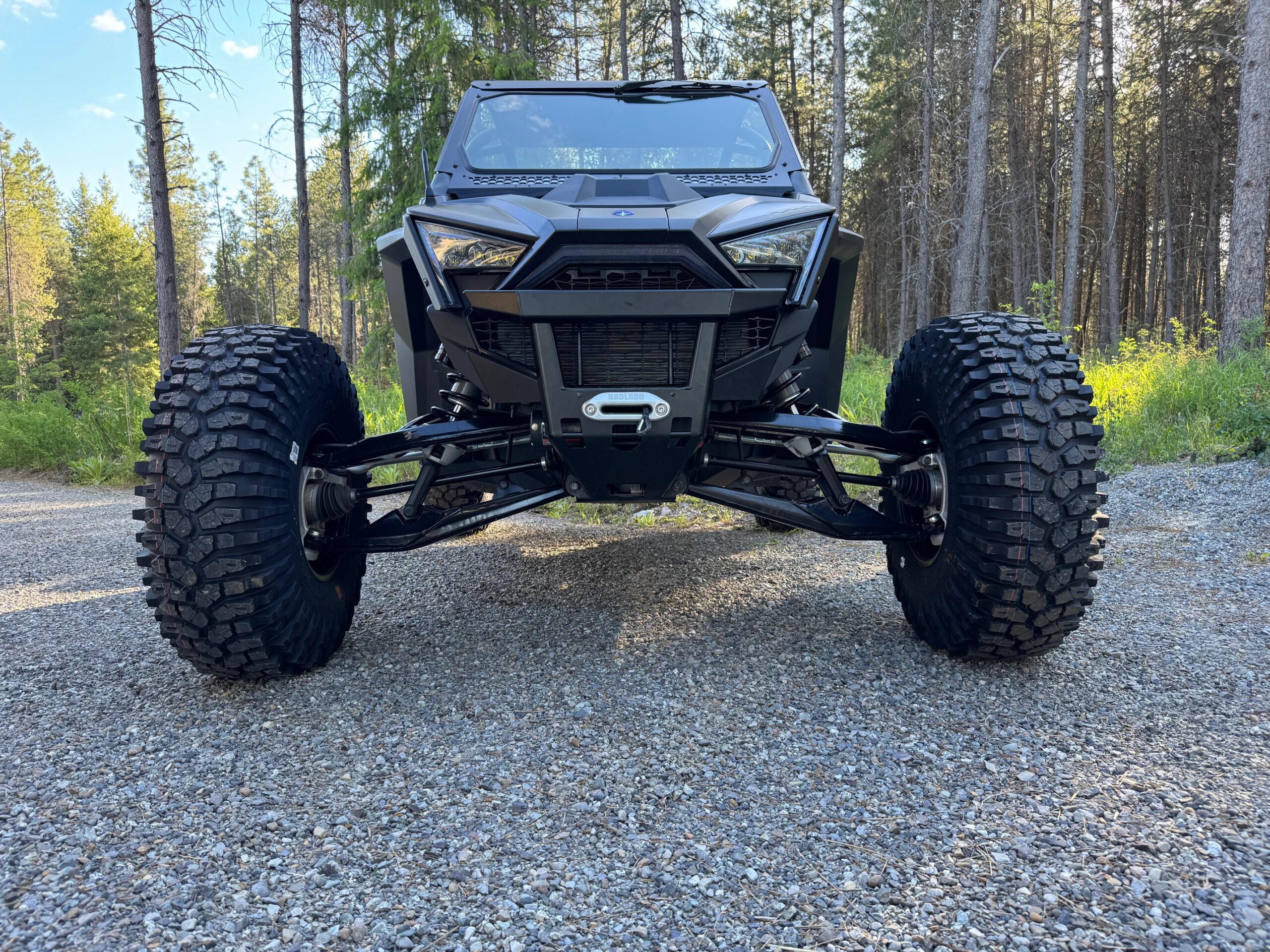 Rock Ready UTV’s Pro R Front Winch Bumper is the perfect combination of looks and utility. The bumper has a strong, clean appearance while giving you the option to run a narrow or widespool winch. Our bumper has 3 tie down or tow points built right in, while still allowing the factory tow hook to be utilized. We designed the bumper to be as tight and tucked up to the front fascia as possible to maintain maximum ground clearance. You even retain a 90 degree approach angle with 35″ tires! We also have slotted holes cut into the top of the bumper to fit a variety of offroad lighting options. The opening is approximately 10.24″ x 5.4″. See the product images for a dimensioned drawing.